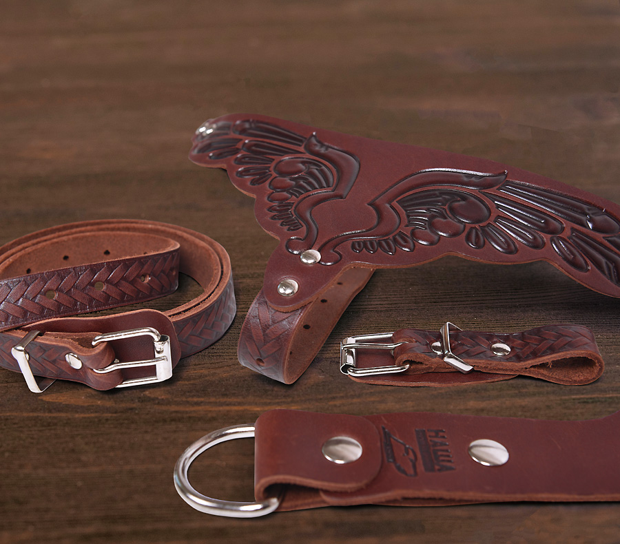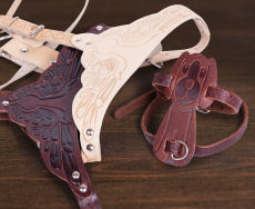 Шорно-седельная кожа идеально подходит для изготовления шлеек, так как материал, из которого сделана шлейка, не должен быть слишком мягким. Иначе через некоторое время от натяжения ремни свернутся в трубочку и начнут врезаться в кожу собаки и натирать. Ремни должны быть широкими, плотными и достаточно жесткими. Только при этом условии они будут хорошо держать форму, а, следовательно, шлейка будет хорошо сидеть и прослужит вам не один год.